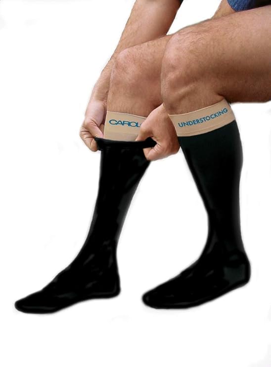 Overstocking and Understocking are designed to work together to provide clinically appropriate compression. Available in 30-40mmHg or 40-50mmHg. Understocking can be worn alone during sleep to provide 15-20mmHg while patient is recumbent.