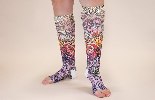 Birds of Paradise Gradient Compression Socks - Small / 15-20mmHg / Open-Toe Short is backordered and will ship as soon as it is back in stock.